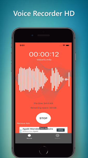 Voice Recorder HD เป็นแอปพลิเคชันสำหรับ iPhone ที่ช่วยให้ผู้ใช้บันทึกเสียงคุณภาพสูงของเสียงพูดและสภาพแวดล้อมของพวกเขา ด้วยคุณสมบัติเช่นประวัติของไฟล์ที่บันทึกไว้ เครื่องมือแสดงผลเสียง และการแชร์ได้ง่ายบนเครือข่ายสังคมหรือทางอีเมล แอปพลิเคชันนี้เป็นเครื่องมือที่สะดวกสำหรับความต้องการในการบันทึกต่าง ๆ อย่างไรก็ตาม มันมีโฆษณาปรากฏ ผู้ใช้สามารถบันทึกเสียงได้โดยไม่จำกัดเวลาอย่างง่ายด้วยการแตะที่ปุ่ม "เริ่ม"